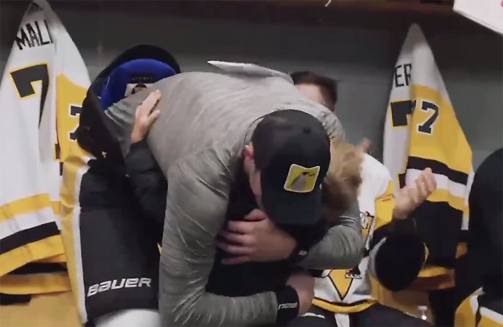 Евгений Малкин проводил 1000-ю игру в НХЛ – и в честь этого «Питтсбург» устроил ему интересную акцию. В раздевалке клуба появился 6-летний Никита Малкин и озвучил стартовую пятерку «пингвинов» на матч, в которой, разумеется, был и его отец. Момент до слез.