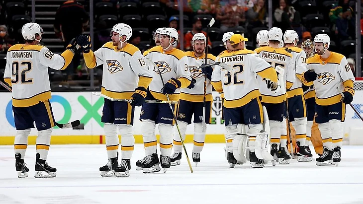 "Анахайм Дакс"-"Нэшвилл Предаторз" 1:6.Гости в последнеи периоде забросили 3 шайбы.Филип Форсберг набрал 3 очка (1+2),Колтон Сиссонс набрал 2 очка (1+1),Юусо Парссинен отдал 2 результативные передачи,Яков Тренин забросил одну шайбу,Юсе Сарос отразил 26 бросков.