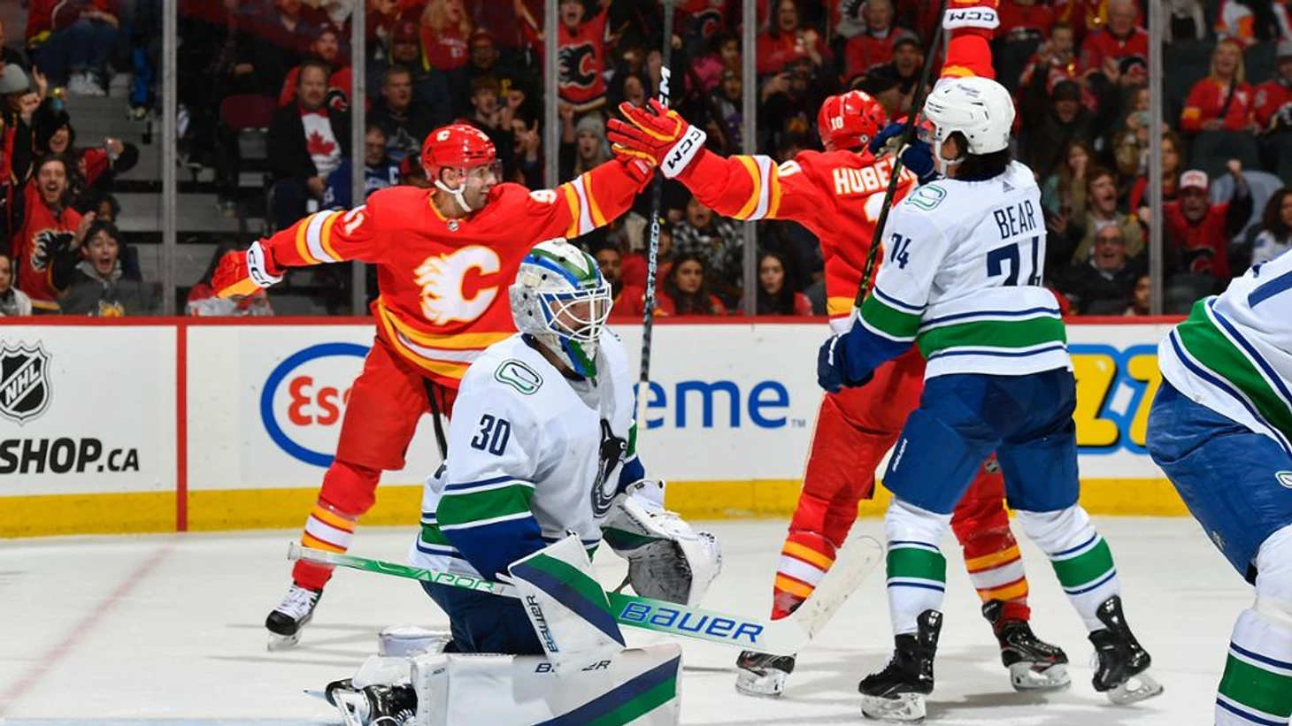 "Калгари Флэймз"-"Ванкувер Кэнакс" 3:2.Маккензи Уигар набрал 2 очка (1+1),Якоб Маркстрём отразил 22 броска.