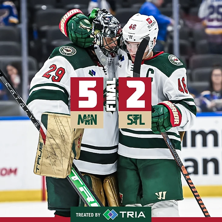 "Сент-Луис Блюз"-"Минесота Уайлд" 2:5.Райан Хартман забросил 2 шайбы,Джордан Гринуэй и Дэвид Сперджон набрали по 2 очка (1+1),Марк-Андре Флери отразил 29 бросков.У хозяев Джордан Киру отдал 2 результативные передачи,Павел Бучневич отдал результативную передачу.