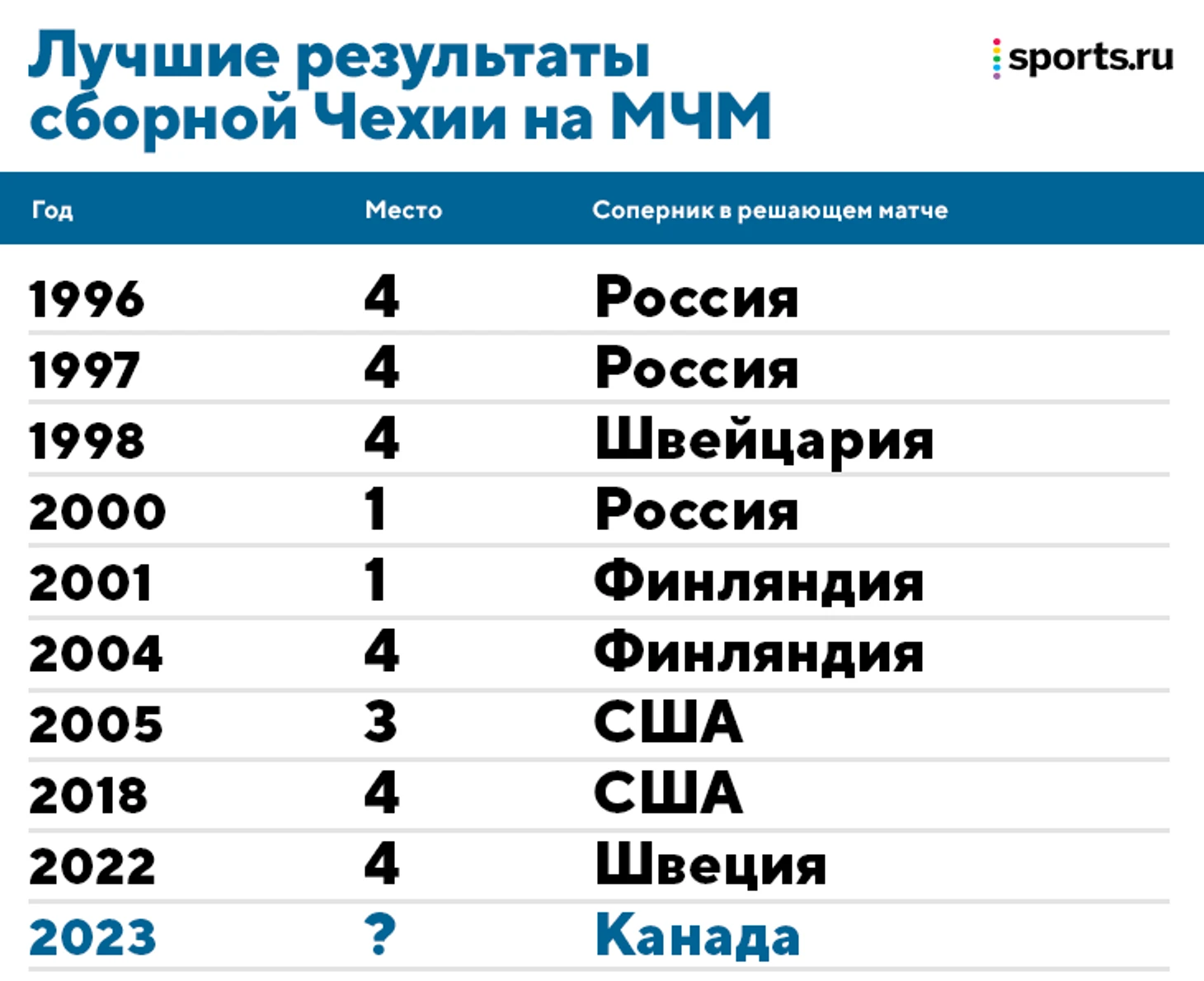 Чехи гарантировали себе как минимум серебро – это будет их первая медаль на МЧМ с 2005 года, а в финале они последний раз играли 22 года назад – в 2001-м победили финнов.