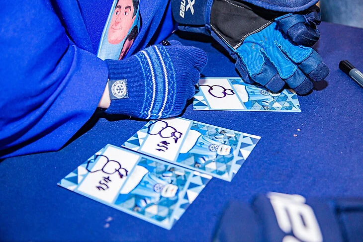 Автограф-сессией игрока уже никого не удивишь. А вот получить роспись от снеговика – редкая возможность. «Сибирь» даже заготовила специальные карточки, на которых талисман чиркал маркером.