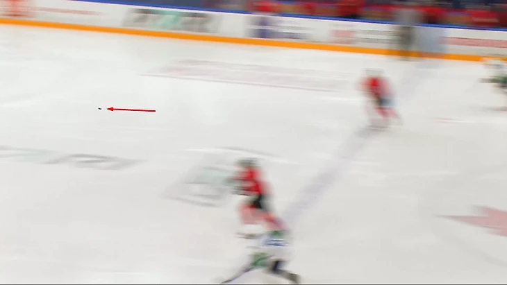 На повторе при покадровом просмотре хорошо видно, что офсайда нет: шайба пересекла синюю линию раньше игрока «Толпара».