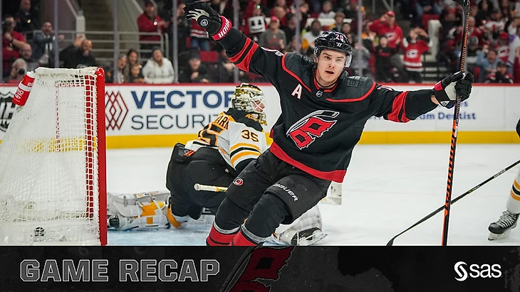 "Каролина Харрикейнз"-"Бостон Брюинз" 4:1.Себастьян Ахо,Пол Штясны.Сет Джарвис и Джордан Стаал забросили по шайбе,Фредерик Андерсен отразил 24 броска."Ураганы" выиграли 5 игру подряд.