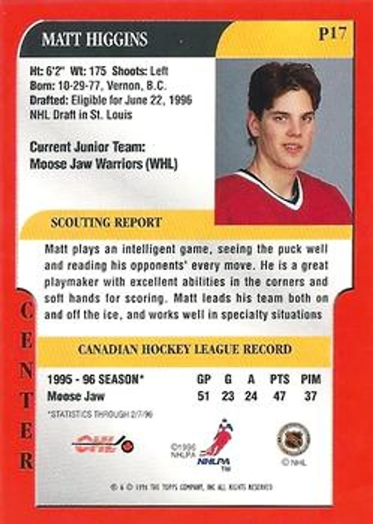 Второй игрок из первого раунда драфта-1996, который не провёл в NHL ни одной игры.