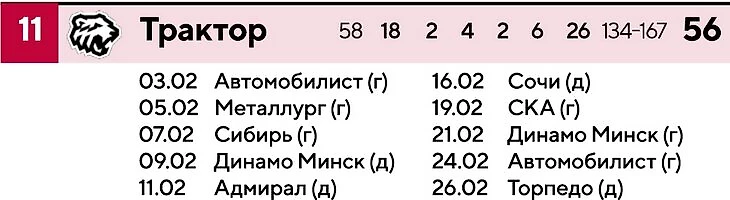 За всю регулярку «Трактор» в гостях набрал только 14 очков – и предпосылок, чтобы ситуация прямо радикально изменилась, не очень много (хотя один из лучших матчей в сезоне был, например, в Омске). А тут ведь еще и выезды не самые приятные – многое будет зависеть от того, как себя чувствуют «Автомобилист» и «Магнитка». Если они вернутся к лучшей форме – уж ко дню Святого Валентина Челябинск может выйти из гонки. Хотя домашние матчи «Трактор» должен брать.