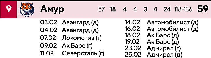 Хабаровчане, как и «Адмирал», с середины февраля не будут покидать Дальний Восток, но турнирное положение у них явно хуже. К тому же до поездки домой маячит страшная гостевая серия Ярославль – Казань – Череповец, по ходу которой можно вообще вылететь из гонки за плей-офф – а ведь перед этим еще и «Авангард» надо дома обыгрывать. В общем, все зависит от того, как «Амур» будет играть в Хабаровске: возьмет все матчи – будут хорошие шансы.