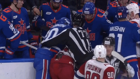 Но сказано это было не в адрес арбитров, а ребят, чистивших лед – и, к слову, это было абсолютно верное указание в и без того затягивающемся матче. Кстати, кровь была и дальше: в попытке разнять игроков на пятачке (а стычек было минут на 20) лайнсмен упал на конек и порезал руку. К счастью, врачи были оперативнее ребят с лопатами.