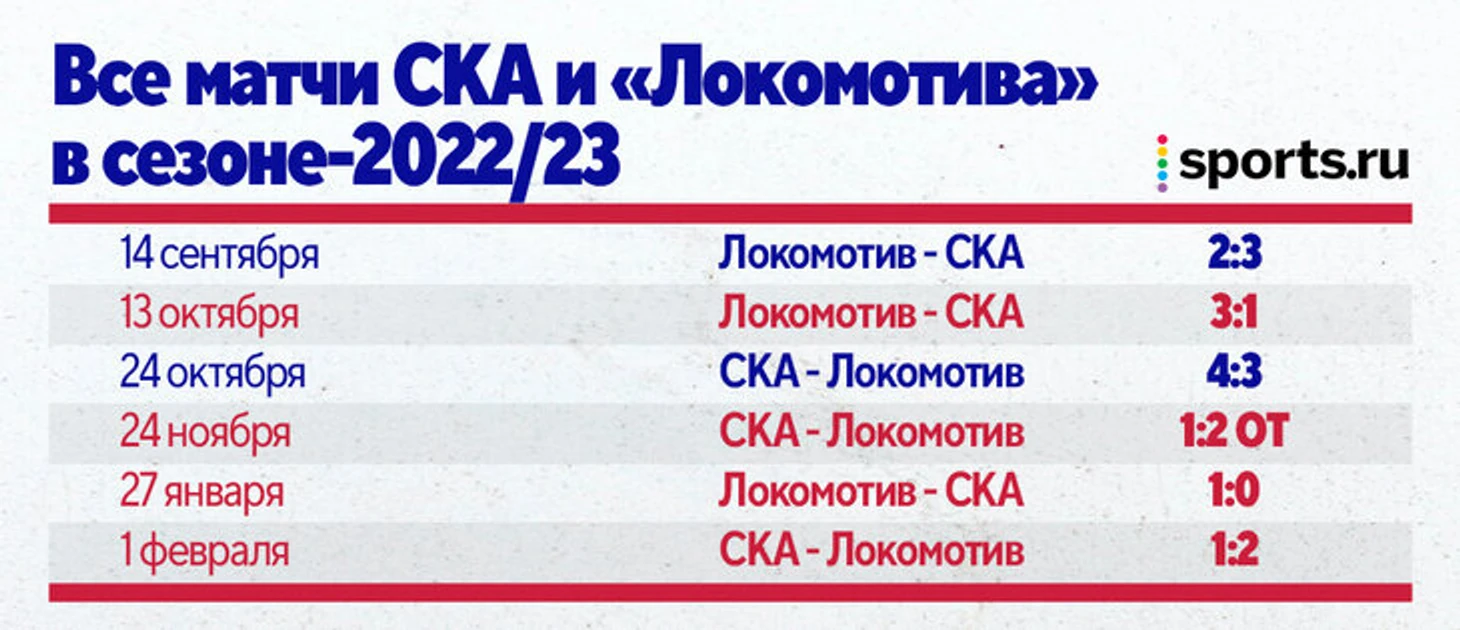 СКА проиграл «Локомотиву» четвертый раз в сезоне. Всего у армейцев 15 поражений, если не считать буллиты – 13. Получается, что почти треть – от Ярославля. Это самый неудобный соперник для СКА-2022/23 (даже против ЦСКА 3-3).
