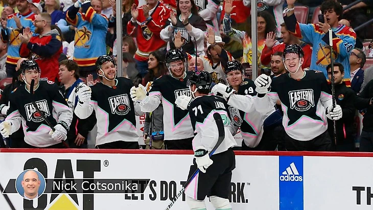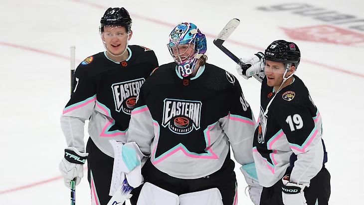 "Атлантик"-"Метрополитан" 10:6.Мэттью Ткачук набрал 5 очков (3+2),Брэди Ткачук набрал 4 очка (1+3),Дилан Ларкин набрал 3 очка (2+1),Александр Барков и Митчелл Марнер отдали по 3 результативные передачи,Ник Сузуки забросил 2 шайбы.Давид Пастрнак набрал 2 очка (1+1),Никита Кучеров забросил одну шайбу,Андрей Василевский и Линус Уллмарк отразили по 10 и 4 броска соответственно.У проигравших Джонни Годро забросил 3 шайбы,Сидни Кросби набрал 3 очка (2+1),Александр Овечкин также набрал 3 очка (1+2),Артемий Панарин отдал 3 результативные передачи,Кевин Хэйз отдал 2 результативные передачи.