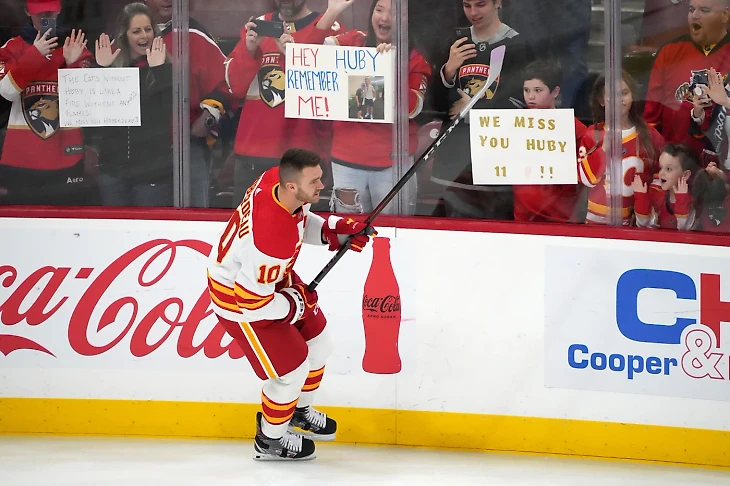 Итак, возвращаемся в лето 2022 года, когда Calgary Flames, потеряв Гудро, успешно обменивают звезду на звезду - своего достаточно молодого таланта Мэттью Ткачака на Юбердо. Сезон 22/23 Юбердо играет еще по старому контракту, а позднее вступает в силу новый контракт с “огоньками” - 84 миллиона на 8 лет. Ходили слухи, что сам Джонатан был в шоке от обмена и даже проклял менеджмент Флориды. Но подписал продление с канадским клубом…