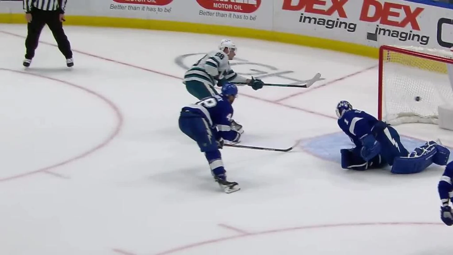 "Тампа-Бэй Лайтнинг"-"Сан-Хосе Шаркс" 3:4 (ОТ).Тимо Майер в овертайме принёс победу гостям.Тимо Майер набрал 3 очка (2+1),Эрик Карлссон также набрал 3 очка (1+2),Томаш Хертль отдал 2 результативные передачи,Александр Барабанов отдал результативную передачу,Каапо Кахконен отразил 34 броска.У хозяев Брэйден Пойнт забросил 2 шайбы,Никита Кучеров отдал 2 результативные передачи,Михаил Сергачёв отдал результативную передачу.В конце второго периода Брэйден Пойнт подрался с Майклом Эссимонтом.