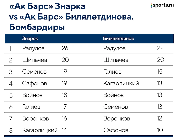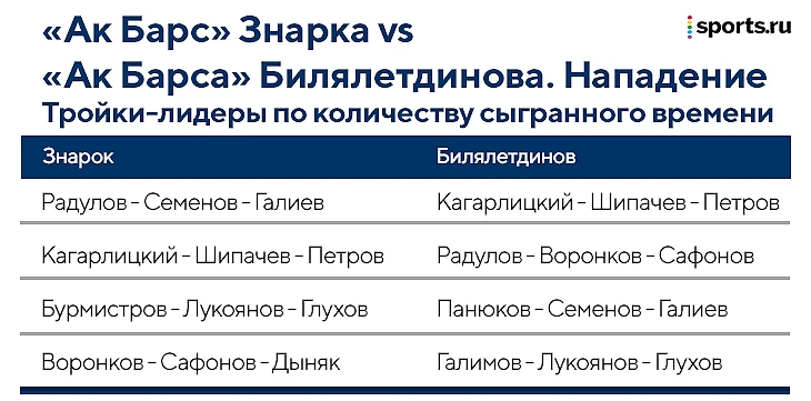 Билялетдинов поставил «Ак Барсу» большинство? Можно сказать и так. Вот только в большинстве он использует ту же бригаду, которая чаще всего выходила при Знарке: Войнов, Радулов, Кагарлицкий, Галиев, Шипачев – просто за первый отрезок они забили однажды, а за второй – уже восемь раз.