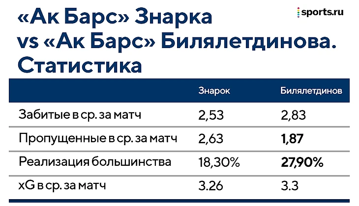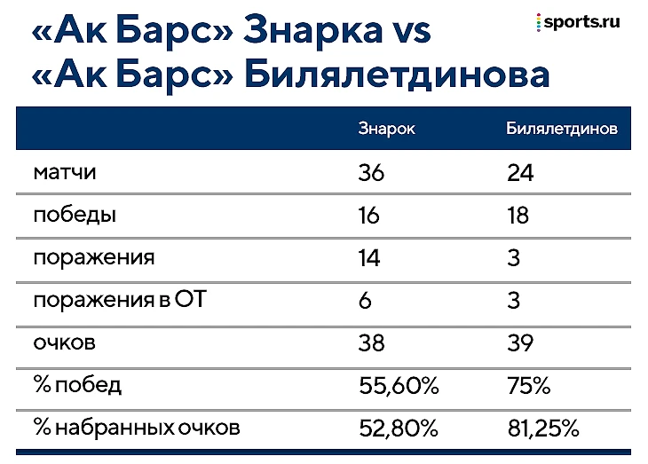 Сразу смешная деталь – при Знарке «Ак Барс» был лучше на точке. 52,8% против 52,7%. Надо возвращать кланы!