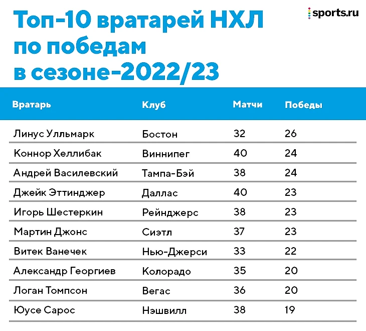 Шестеркин после этого матча вообще забрался в топ-5 по победам во всей лиге. Приятно видеть сразу трех русских вратарей в первой десятке, но их там в скором времени может быть еще больше: у Ильи Самсонова 18 побед, а Ильи Сорокина – 17.