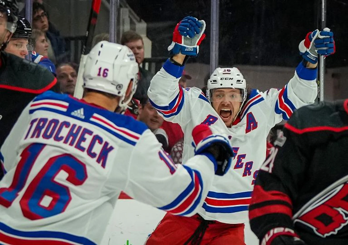 "Каролина Харрикейнз"-"Нью-Йорк Рейнджерс" 2:6.В последнем периоде гости забросили 4 шайбы.Артемий Панарин набрал 5 очков (4+1),Винсент Трочек и Джимми Веси отдали по 2 результативные передачи,Ярослав Халак отразил 27 бросков.У хозяев Андрей Свечников отдал результативную передачу."Рейнджеры" выиграли 5 игру подряд.