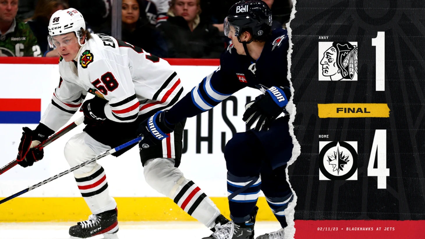 "Виннипег Джетс"-"Чикаго Блэк Хоукс" 4:1.Хозяева во втором периоде забросили 3 шайбы.Блэйк Уилер набрал 3 очка (2+1),Джош Моррисси набрал 2 очка (1+1),Коннор Хеллебайк отразил 31 бросок.В третьем периоде Адам Лоури подрался с Джарредом Тинорди.