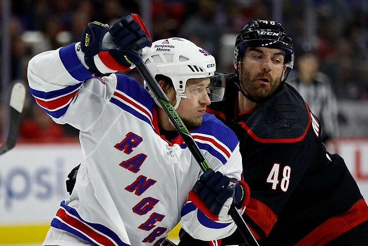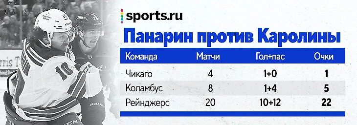 В «Рейнджерс» у него с «ураганами» получается получше, чем в «Чикаго» и «Коламбусе», хотя все равно статистика ниже его средних показателей. В прошлом плей-офф, например, ньюйоркцы как раз играли против «Каролины» во втором раунде – и в той серии у Панарина скромные 1+3 в 7 матчах (а ведь даже Шестеркин набрал 0+2).