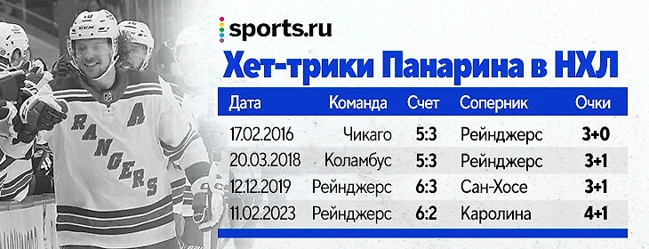 Это первый покер в карьере Панарина. Было три хет-трика, причем два из них – в ворота «Рейнджерс», по разу в свитере «Чикаго» и «Коламбуса». Он лишь четвертый игрок в истории франшизы, кому удалось забить четыре гола в одном матче. Ранее это делали Мика Зибанежад (2020), Марк Павелич (23 февраля 1983 года) и Дон Мердок (12 октября 1976 года).