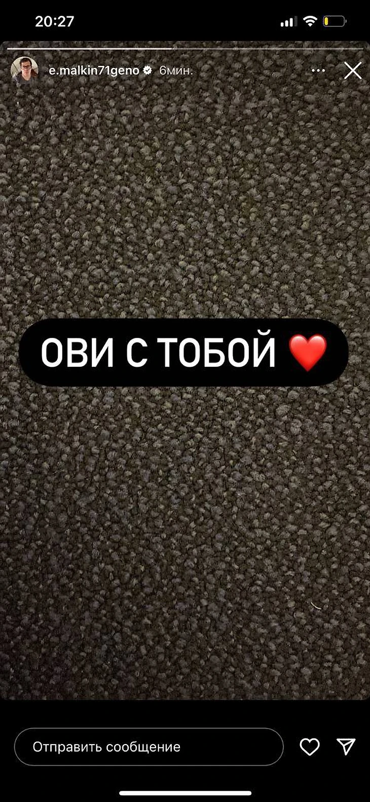 Евгений Малкин выложил в сторис пару нужных слов: «Ови, с тобой ❤️».