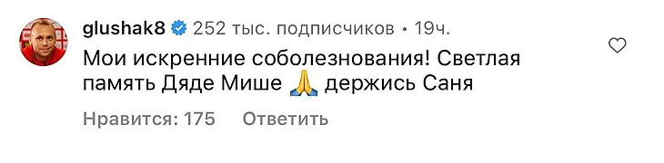 Главный тренер СКА и вице-президент ФХР Роман Ротенберг также выразил соболезнования: «Ужасная новость – ушел из жизни Михаил Овечкин, отец Александра Овечкина. Он был настоящим русским мужиком: прямым, честным, трудолюбивым. Воспитал великолепного сына.