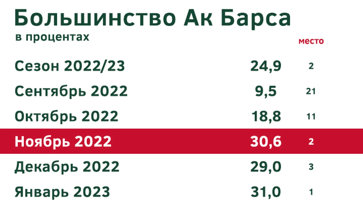 При Билялетдинове все стало намного проще: один из форвардов, по сути, лишь обозначает прессинг, остальная четверка находится сзади. С момента назначения нового-старого тренера «Ак Барс» стал одной из самых пассивных команд лиги; в этой же компании, помимо «Северстали», ожидаемо «Адмирал» и «Сибирь». Со Знарком на старте регулярки казанцы были выше среднего в КХЛ по пробегу: 6-е место в сентябре, а в октябре – 8-е место.