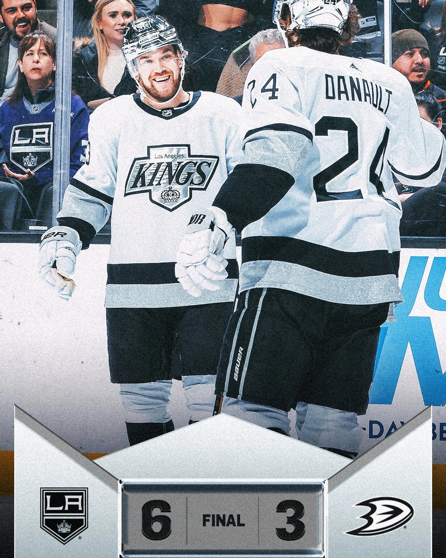 "Анахайм Дакс"-"Лос-Анджелес Кингз" 3:6.Кевин Фиала набрал 3 очка (1+2),Виктор Арвидссон забросил 2 шайбы,Анже Копитар и Блэйк Лизотт набрали по 2 очка (1+1),Алекс Аяфалло и Дрю Даути отдали по 2 результативные передачи,Финикс Копли отразил 16 бросков.У хозяев Франк Ватрано набрал 2 очка (1+1),Кэм Фаулер отдал 2 результативные передачи,Дмитрий Куликов отдал результативную передачу."Короли" выиграли 3 игру подряд.