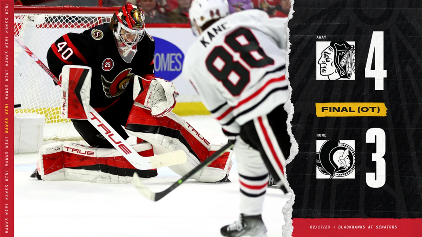"Оттава Сенаторз"-"Чикаго Блэк Хоукс" 3:4 (ОТ).Анреас Атанасиу в овертайме принёс победу гостям.Патрик Кейн забросил 2 шайбы,Макс Доми и Джейк МакКейб отдали по 2 результативные передачи,Петр Мразек отразил 28 бросков.У хозяев Никита Зайцев отдал результативную передачу."Чёрные ястребы" прервали серию из 3 поражений подряд.