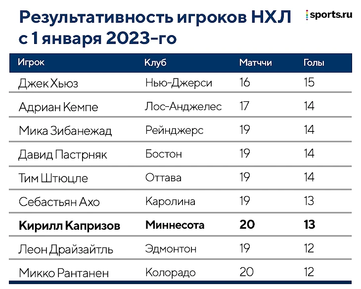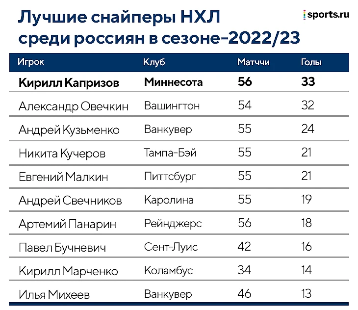 Для Капризова это второй сезон подряд, когда он забивает более 30 голов, что намекает на его стабильность. В оставшуюся часть регулярки будет очень интересно последить за противостоянием двух русских топ-снайперов – Александра Овечкина и Кирилла Капризова.