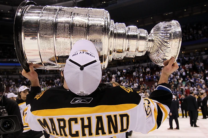И начнём мы на удивление не с грязи. А с того, что Брэд Маршанд – отличный хоккеист. За свою карьеру в НХЛ он набрал уже 846 очка, а с учётом плей-офф эта цифра вырастет до 964. Маршанд брал Кубок Стэнли в 2011 году, брал «золото» на домашнем для нас чемпионате мира 2016 года, а спустя несколько месяцев уже поднимал над головой Кубок Мира. На том турнире Маршанд стал лучшим снайпером и вторым бомбардиром после Сидни Кросби, а его гол на последней минуте во втором матче финала против сборной Европы оказался «золотым». Также скажем, что Брэд дважды подряд брал золотые медали на молодежных чемпионатах мира, в 2007 и 2008 годах. Кроме того, на свой пик результативности Маршанд вышел в 2019 году: за тот календарный год он настрелял 136 очков и стал самым результативным игроком НХЛ. Да-да, он набрал больше Макдэвида. Кстати, если не видели, у нас был отдельный рейтинг на эту тему, он доступен в текстовом варианте здесь. Однако на удивление у Маршанда нет ни одной индивидуальной награды НХЛ, зато он удерживает за собой многие рекорды «Бостона», как например количество голов в овертаймах, в меньшинстве или же в 7 играх серий плей-офф. Маршанд – безумно талантливый и умный игрок, а их тройка с Кросби и Бержероном была одной из лучших в современном канадском хоккее. И упоминаем мы это для того, чтобы ещё раз обозначить цель нашего видео: мы не хотим ни в коем случае дискредитировать Маршанда или поставить под сомнение его хоккейные навыки. Маршанд не теряется в плей-офф, Маршанд может повести за собой команду, Маршанд один из лидеров команды, но, пожалуй, главное его качество – залезть под кожу сопернику.