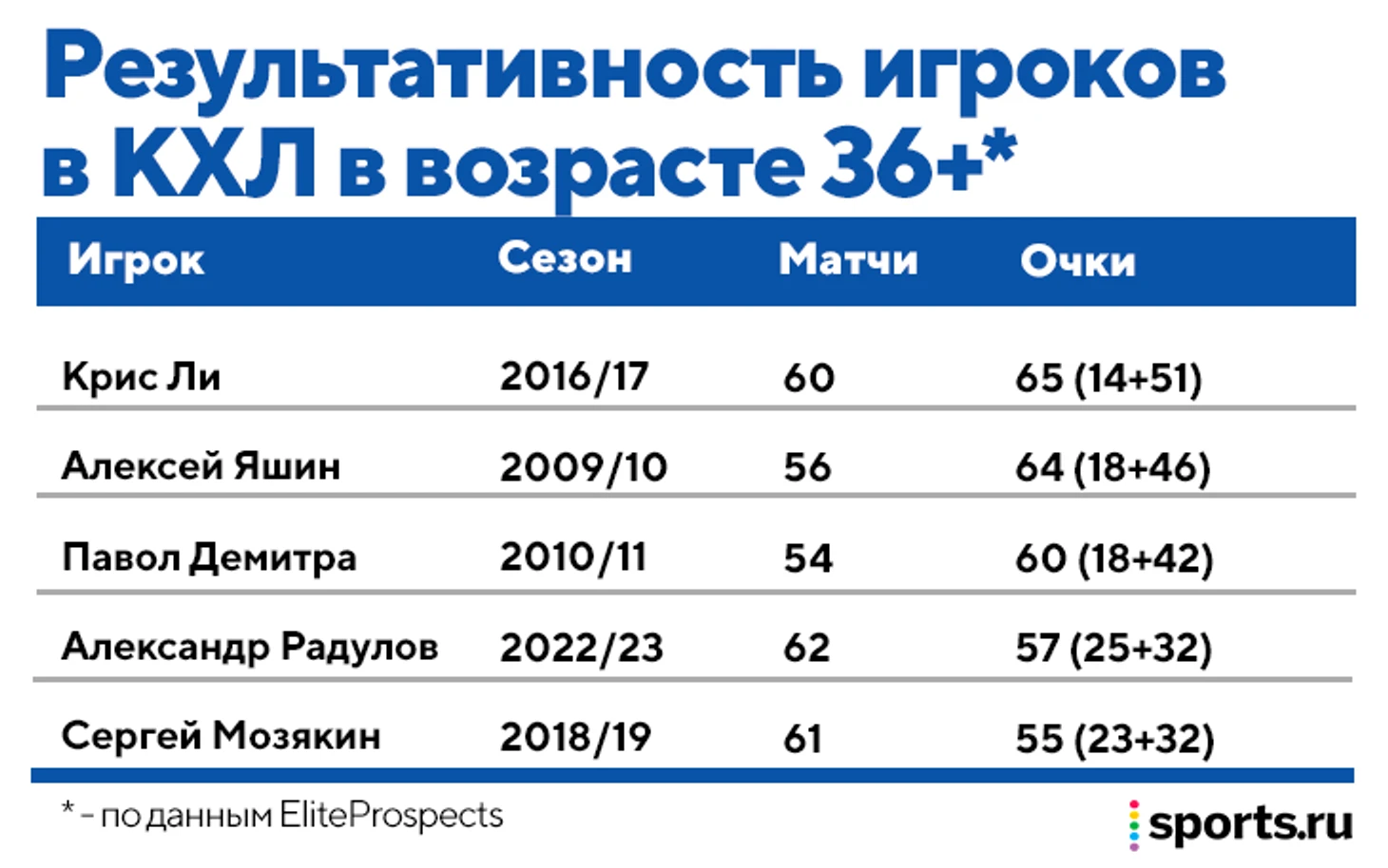 Капитану «Ак Барса» 36 лет, но он по-прежнему в отличной форме и играет с теми же эмоциями и задором. Он повторил рекорд Яромира Ягра по голам в возрасте 36 и старше, по очкам он тоже в топ-5.