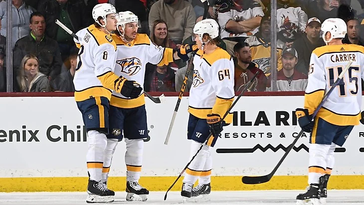 "Аризона Койотс"-"Нэшвилл Предаторз" 2:6.Гости в последнем периоде забросили 3 шайбы.Томаш Новак и Мэтт Дюшен набрали по 3 очка (1+2),Роман Йоси также набрал 3 очка (2+1),Коди Гласс и Яков Тренин набрали по 2 очка (1+1),Микаэль Гранлунд отдал 2 результативные передачи,Юсе Сарос отразил 25 бросков.У хозяев Николай Шмальтц набрал 2 очка (1+1)."Хищники" выиграли 3 игру подряд.