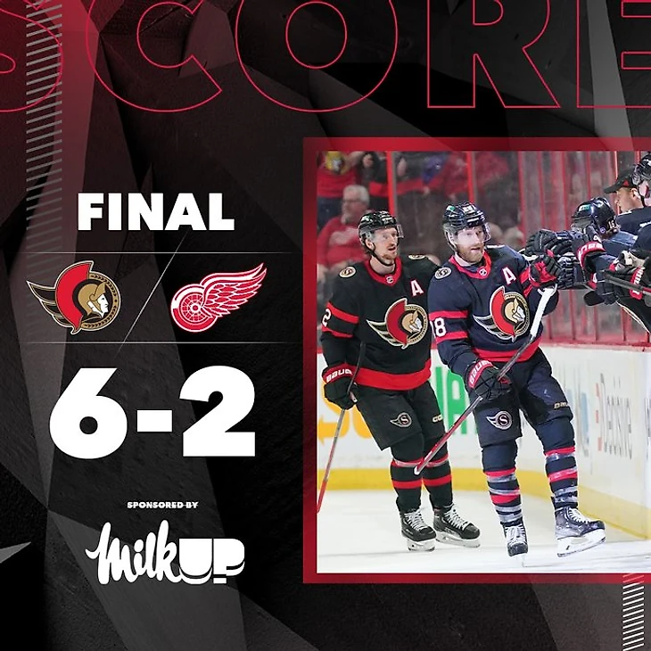 "Оттава Сенаторз"-"Детройт Ред Уингз" 6:2.Клод Жиру набрал 4 очка (1+3),Томас Шабо набрал 3 очка (1+2),Артём Зуб отдал 2 результативные передачи,Кэм Тальбо отразил 22 броска.