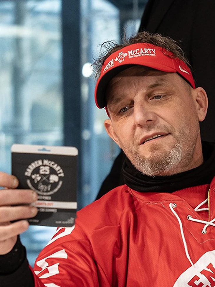 Даррен Маккарти больше известен своими сильными кулаками, чем способностями забивать. Четырехкратный обладатель Кубка Стэнли (1997, 1998, 2002 и 2008 гг.), он большую часть своей карьеры в НХЛ был силовым игроком «Детройт Ред Уингз».