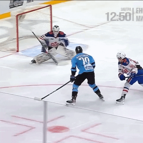 Мартынов убегает в меньшинстве на 50-й минуте, его оттесняют с бросковой позиции, он делает прострел – шайба не доходит до партнера, но от клюшки Никишина залетает в ворота. 1:1.