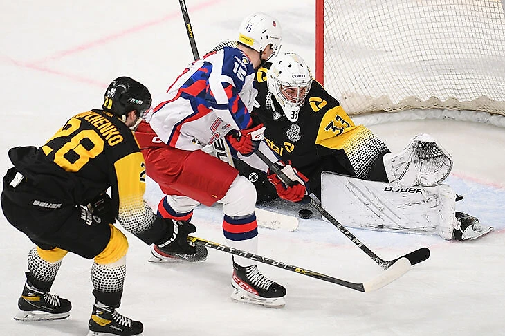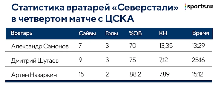Если вы смотрели четвертую игру серии между «Северсталью» и ЦСКА, то могли заметить кое-что необычное – в воротах с первых минут играл Александр Самонов, после трех пропущенных шайб его сменил Дмитрий Шугаев, а на третий период вышел Артем Назаркин.