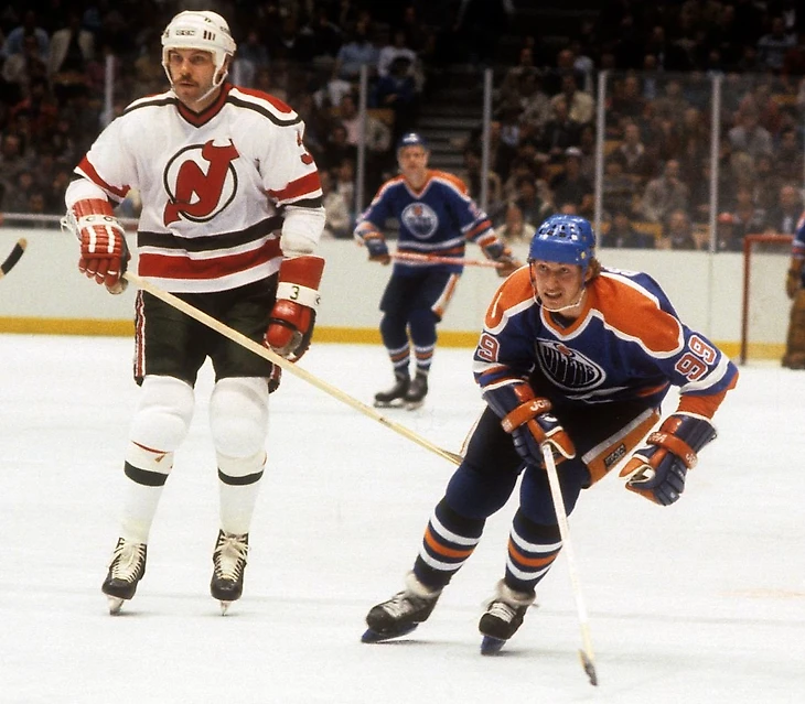 Таким образом, представленная выше табличка в свете этого исторического факта начинает сверкать несколько иными красками: Эдмонтон с Уэйном Гретцки - самая результативная команда сезона, в то время как Нью-Джерси, команда, где Уэйн Гретцки мог бы оказаться, если бы не хитроумие и изворотливость Поклингтона - худшая по результативности команда. Соответственно, если рассуждать в сослагательном наклонении (а у нас сегодня весь пост именно в нём), то по идее, если бы не "персональный контракт", то скорее всего в сезоне 1983-84 Эдмонтон бы был существенно менее результативной командой, в то время как Нью-Джерси - существенно более результативной. При этом, мы также понимаем, что в Нью-Джерси у Гретцки бы скорее всего не оказалось в партнерах Ярри Курри, Марка Мессье, Пола Коффи, Гленна Андерсона и далее по списку, а значит команды не просто поменялись бы местами в списке результативности. Скорее всего результативность Эдмонтона без Гретцки бы снизилась, но не так катастрофически, чтобы стать худшей командой НХЛ в этом контексте, в то время как Гретцки поднял бы результативность Дьяволов, но не сделал бы её самой результативной командой НХЛ в одиночку. И логичным образом, сам Гретцки не набрал бы Нью-Джерси 205 очков в том сезоне, 87 из которых - голы.