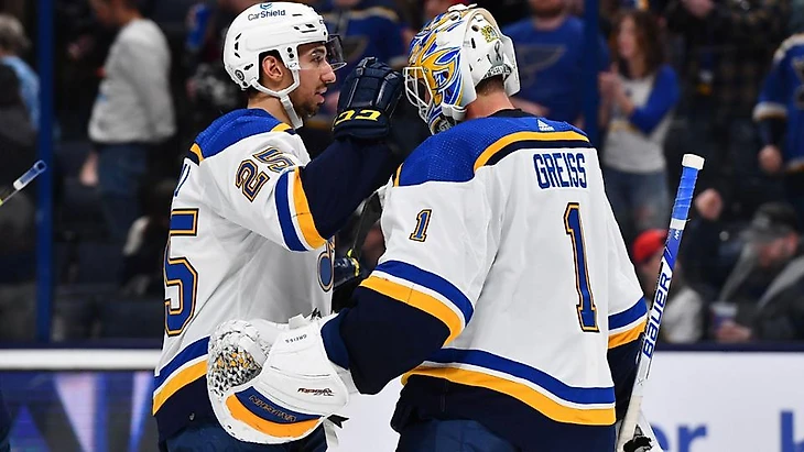 "Колумбус Блю Джакетс"-"Сент-Луис Блюз" 2:5.Джордан Киру забросил 3 шайбы,Самуэль Блэй набрал 3 очка (1+2),Брэндон Саад набрал 2 очка (1+1),Брэйден Шенн и Роберт Томас отдали по 2 результативные передачи,Алексей Торопченко и Павел Бучневич отдали по результативной передаче,Томас Грайсс отразил 37 бросков.У хозяев Джонни Годро отдал 2 результативные передачи.