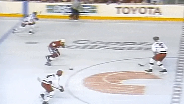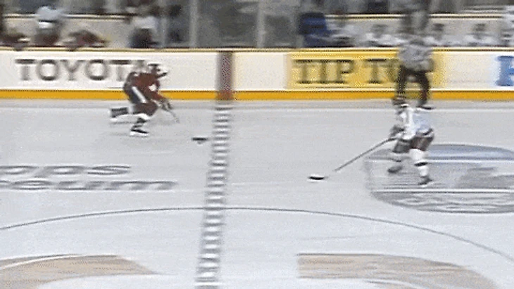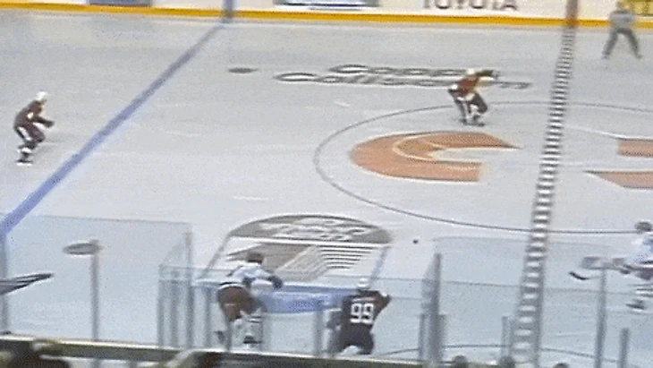 Ну, может быть, в этом матче он и не был на пике формы. В середине первого овертайма есть продолжительный кусок, где Гретцки будто испарился. Как признается позже Великий, проблема заключалась в том, что он довел себя до изнеможения, утратил контроль над телом и обмочился прямо на лавке.
