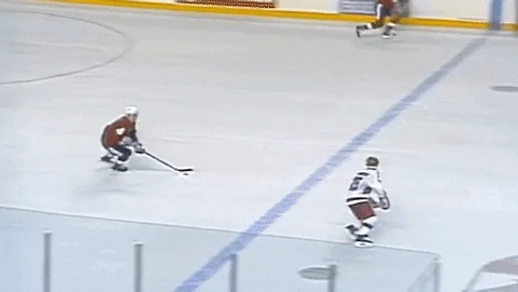 Учитывая обстоятельства встречи и уровень соперника, это был лучший матч в карьере Гретцки – и это вовсе не шутка. Пять результативных передач, безусловно, оказались не лишними, но если включить запись всего матча, то вы довольно быстро устанете следить за перемещениями Уэйна. В ту эпоху в протоколах еще не указывали игровое время, однако если матч длился чуть более полутора часов на запредельной скорости, Гретцки легко мог провести на льду порядка 40 минут.
