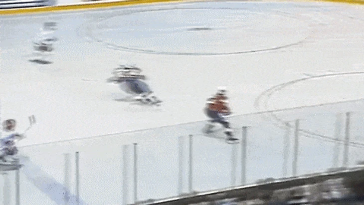 «Я не успел понять, на какой скорости он катит, как он вдруг оказался передо мной, – рассказывает Фюр. – Я думал выбить у него шайбу клюшкой. Думал откатиться назад. В итоге замешкался, и он отправил ее мне над плечом».