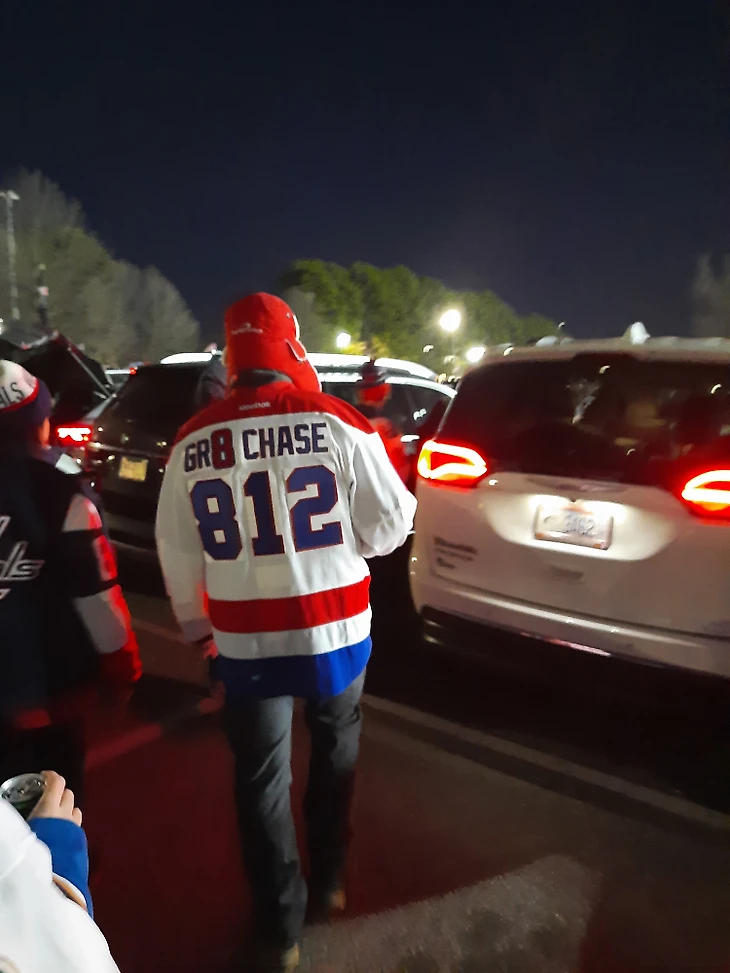 Стадионная серия как назло пришлась на отъезд Овечкина в Москву, но его джерси преобладали среди всех джерси «Вашингтона». Особенно мне запомнилась эта джерси: «Великая погоня» через цифру 8. Причём номер 812 - именно столько Овечкин забил на тот момент. Судя по всему у этого человека огромная коллекция из 812 джерси и после падения рекорда его история наверняка всплывёт в СМИ.