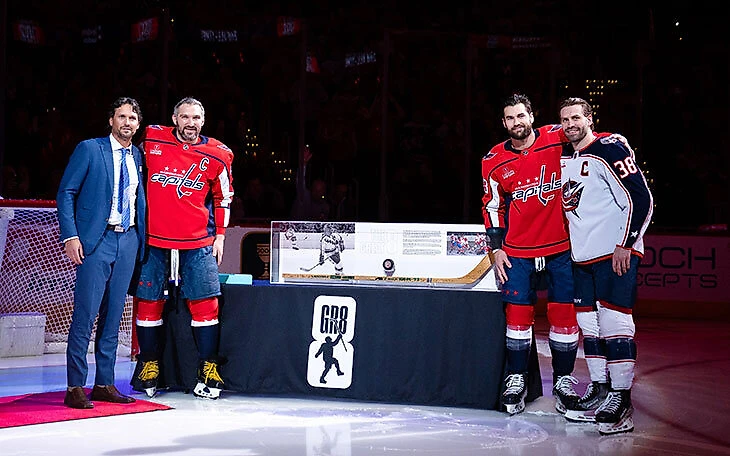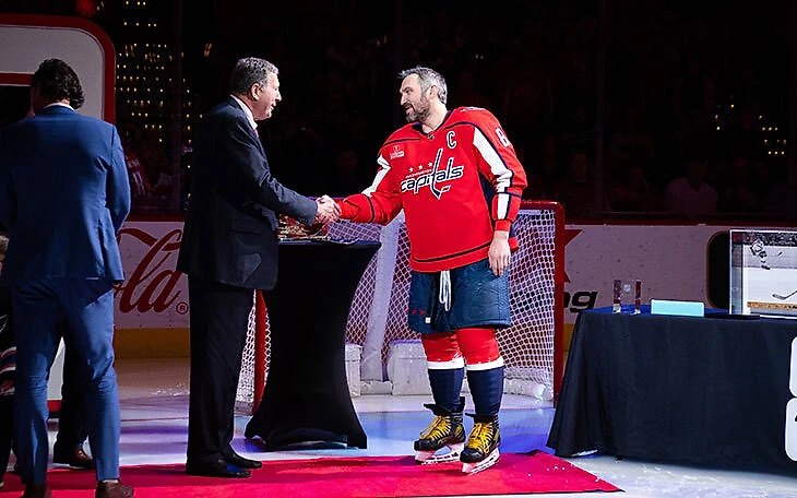 Есть вещи, которым никогда не устанешь поражаться – например, умению североамериканцев делать крутой праздник вокруг каких-то важных успехов спортсменов. «Вашингтон», пусть и с запозданием, отметил достижение своего капитана Александра Овечкина, который в середине декабря сначала забросил 802-ю шайбу и вышел на второе место в списке снайперов за всю историю НХЛ.