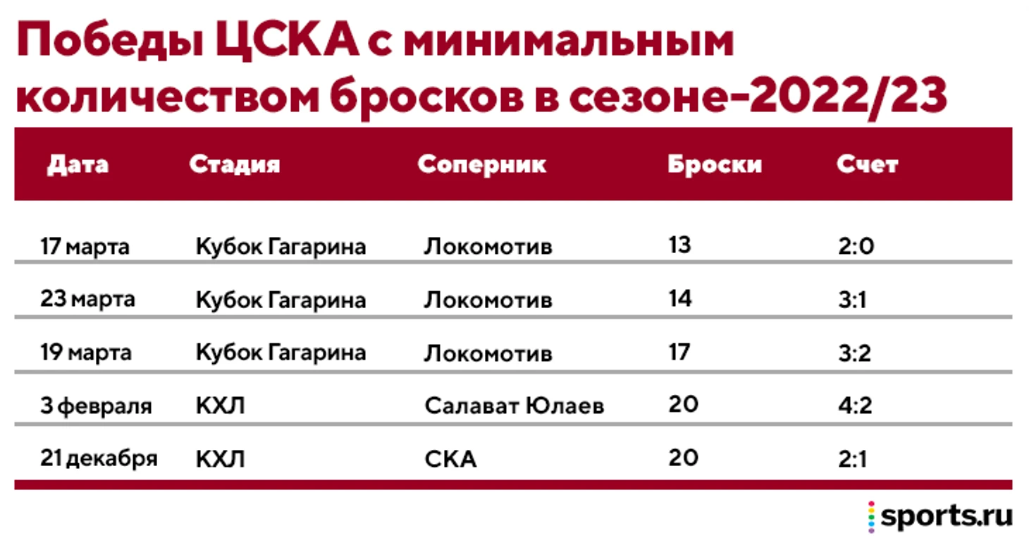 Армейцы нанесли всего 14 бросков в створ – и забили 3 гола. Фантастическая реализация, даже если вычесть шайбу в пустые ворота. Мощнее в этом плей-офф выступал, кажется, только «Авангард» в гостевых матчах с «Сибирью». Но ЦСКА вообще не нужно много бросков для побед – и лучше всего это знает «Локомотив».