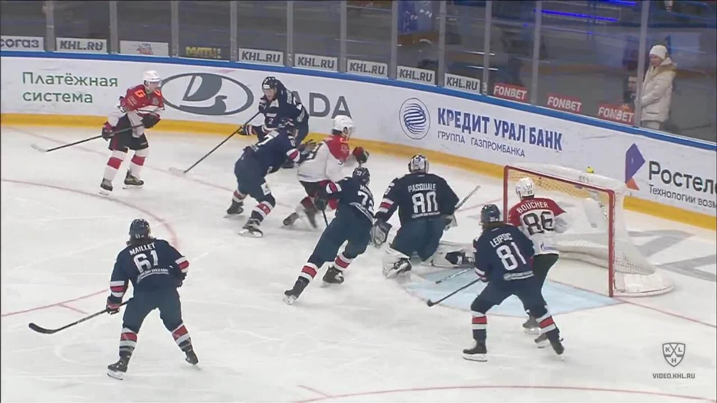 В одной из успешных контратак Корбан Найт после тонкой передачи от Антона Белова, прорвался по правому флангу, стянул на себя трех хоккеистов Металлурга, а сам выдал отличную передачу в свободную зону на клюшку Риду Буше, который направил шайбу в дальний угол ворот, поймав на перемещении голкипера уральской команды.