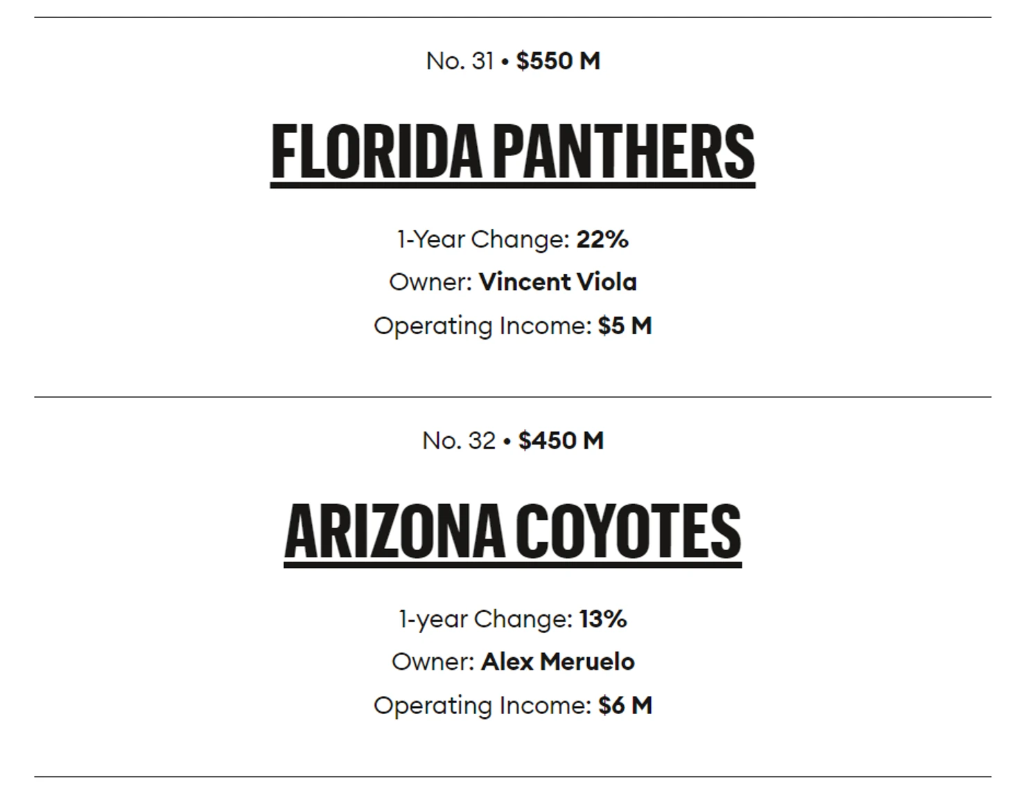 Две самые малоприбыльные франшизы НХЛ, 2022 год