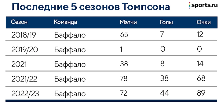 Ниже у меня, конечно, припасена таблица с результатами Томпсона в последние сезоны, но мы с вами общаемся достаточно для того, чтобы я не тратил ваше время на пересказ Википедии; тем более, что среди вас есть болельщики «Сент-Луиса» (команда, драфтовавшая Томпсона) и «Баффало», которые следили за ним плотнее.