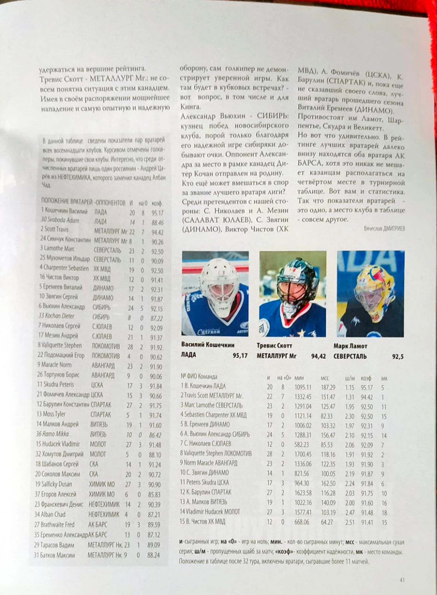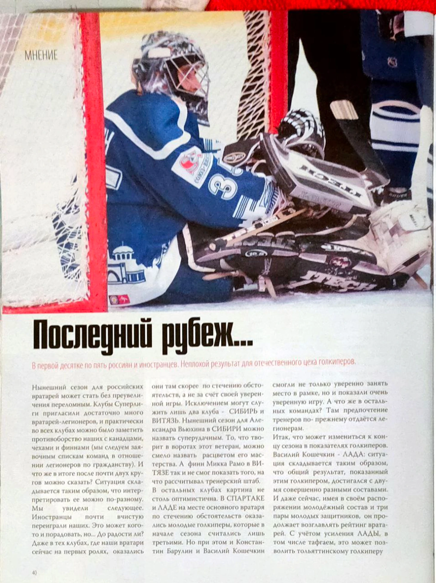 p.s. В качестве бонуса прикладываем статью из тольяттинского журнала «Профессиональный хоккей» о том, как обстояли дела с вратарями в декабре 2005-го года.