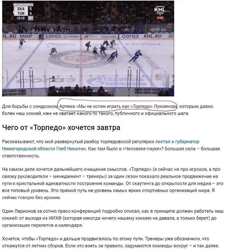 В обоих текстах он обвиняет Артёма Лукоянова в том, что тот не хочет играть как «Торпедо». Не хочет и не хочет, это его право, только вот слова эти принадлежат Кириллу Петрову. Прилежный сотрудник даже не удосужился проверить информацию по новостям, которые выкладывают его же коллеги. Поэтому, Н.П., читай внимательнее и впредь не допускай таких ошибок!