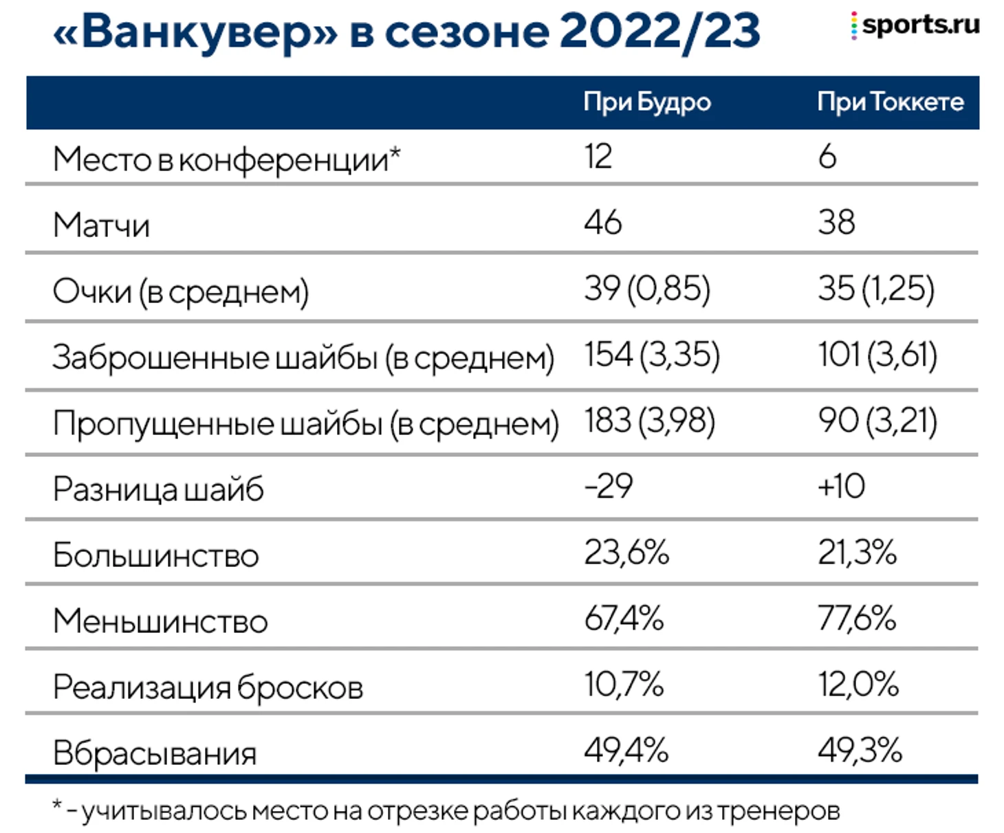 Судите сами: при Будро команда пропускала в среднем 3,98 гола за матч, а после смены тренера, которую как раз подавали через то, что «косаткам» нужно улучшить игру в обороне, стала пропускать меньше – 3,21. Более того, у «Ванкувера» при Токкете вообще положительная разница забитых и пропущенных – «+11».